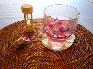 「工芸茶」というやつの、ジャスミンの玉のなかから、お湯を入れるとぽっとひとつ赤く、咲くように現れるのが千日紅だよね。
